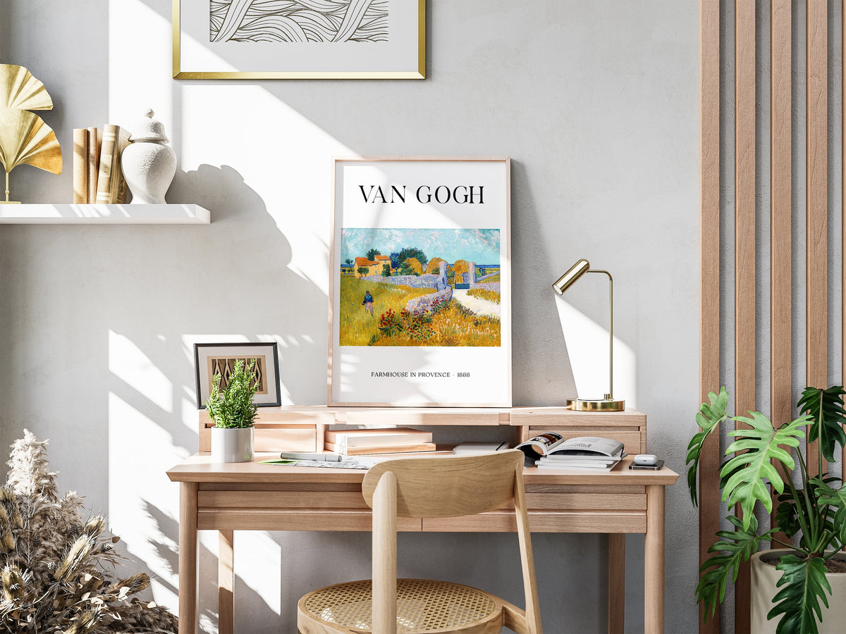Haz que tu pared destaque con esta llamativa representación de 1888 de las ondulantes colinas y granjas de la Provenza, pintada nada menos que por el legendario Van Gogh. Cuelga este cuadro para dar a tu habitación un aire de refinada cultura y de granja hogareña.